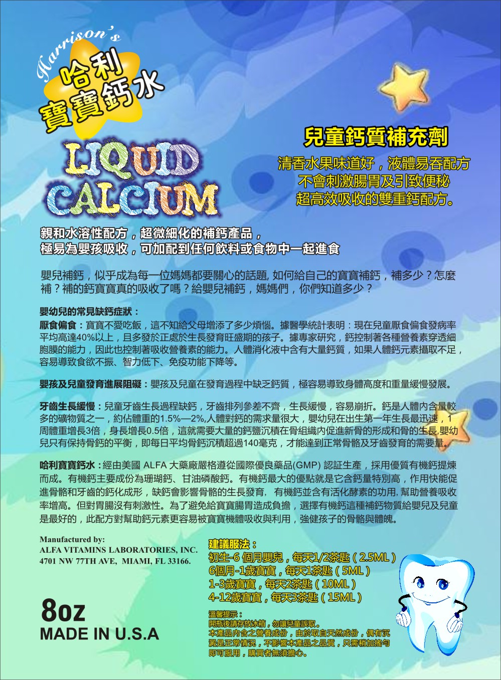 哈利寶寶鈣水兒童鈣質補充劑8oz